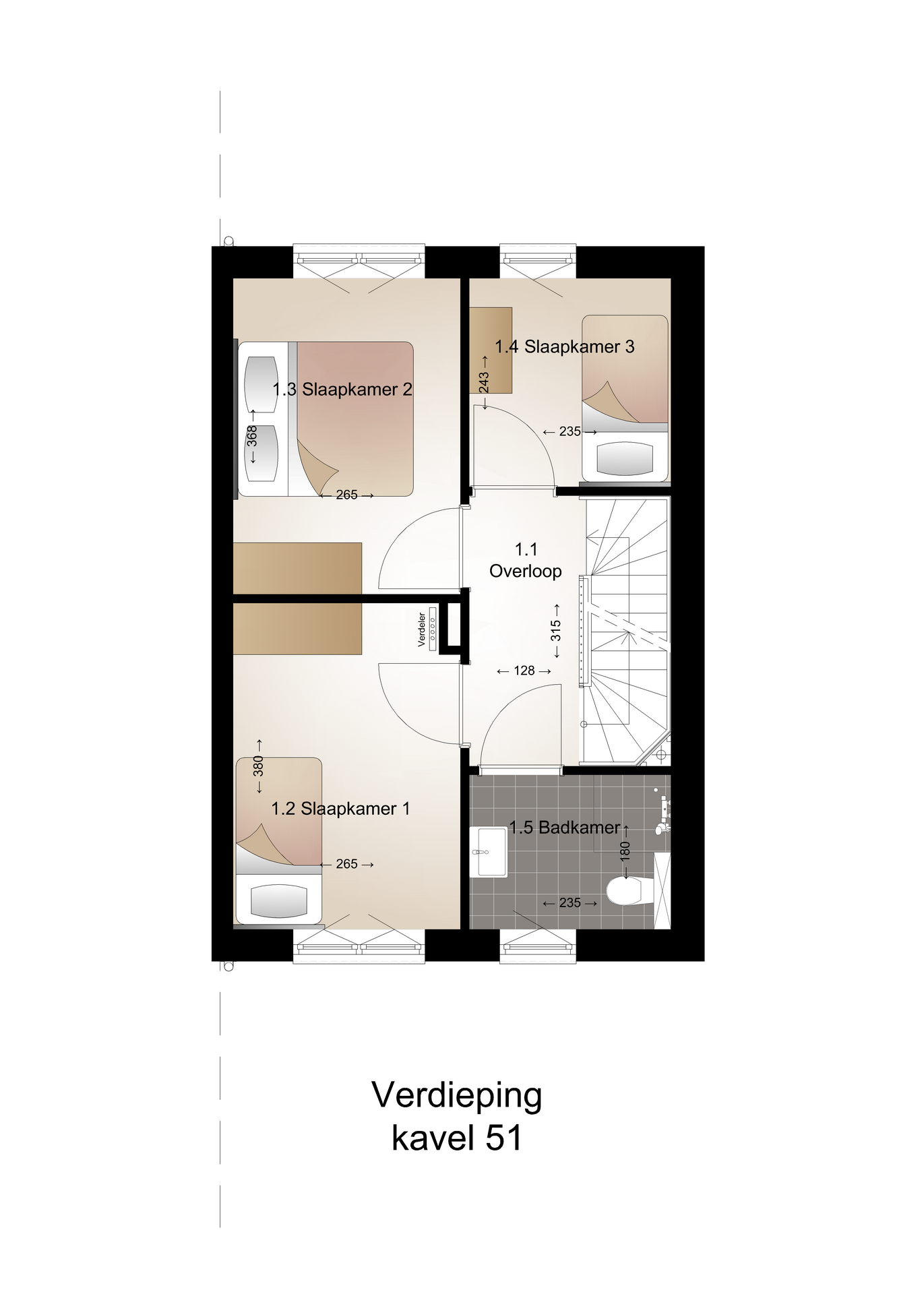 buitenberging. Op de 1e verdieping bevinden zich 3 slaapkamers en de badkamer.