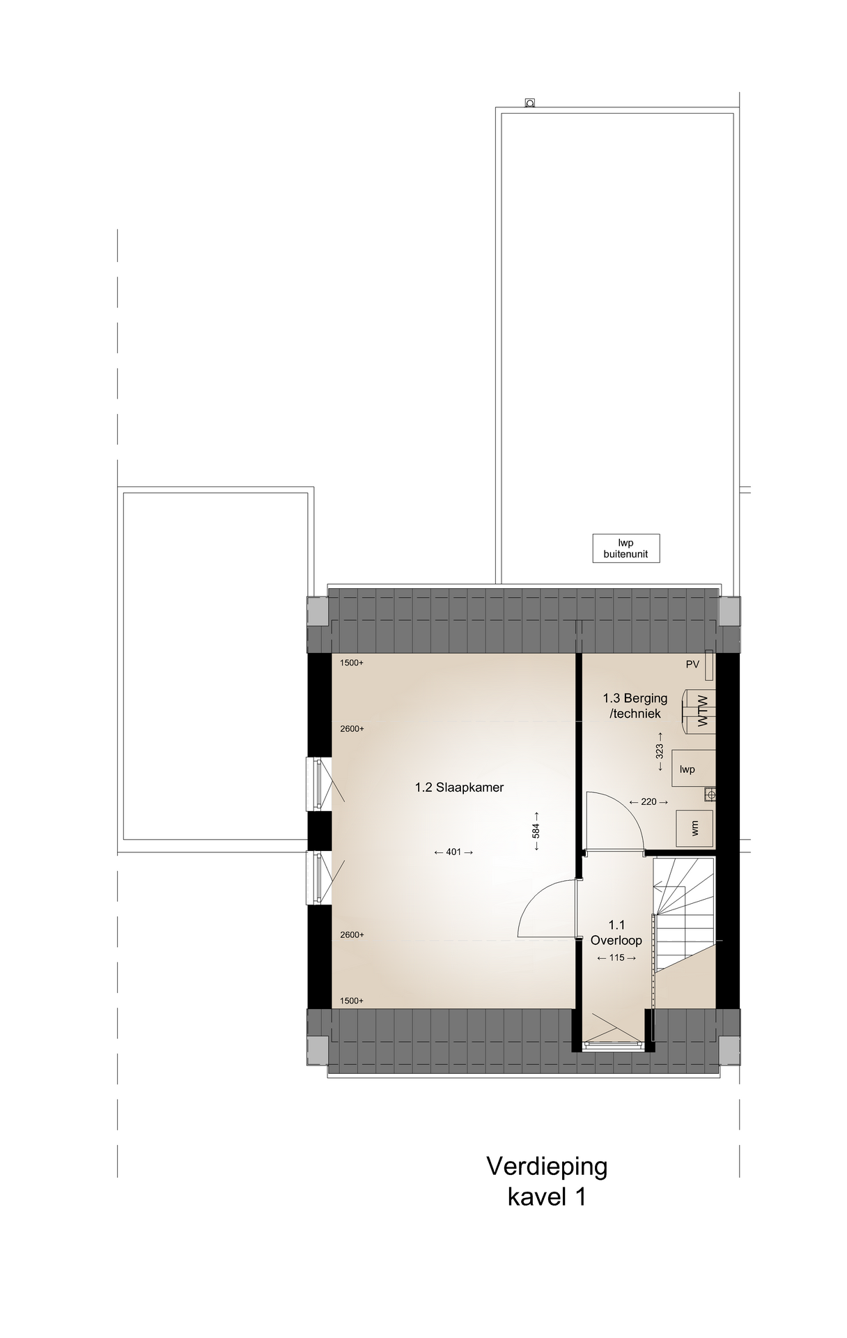 zich de 2e slaapkamer en een ruimte/berging waar de installaties zich bevinden.