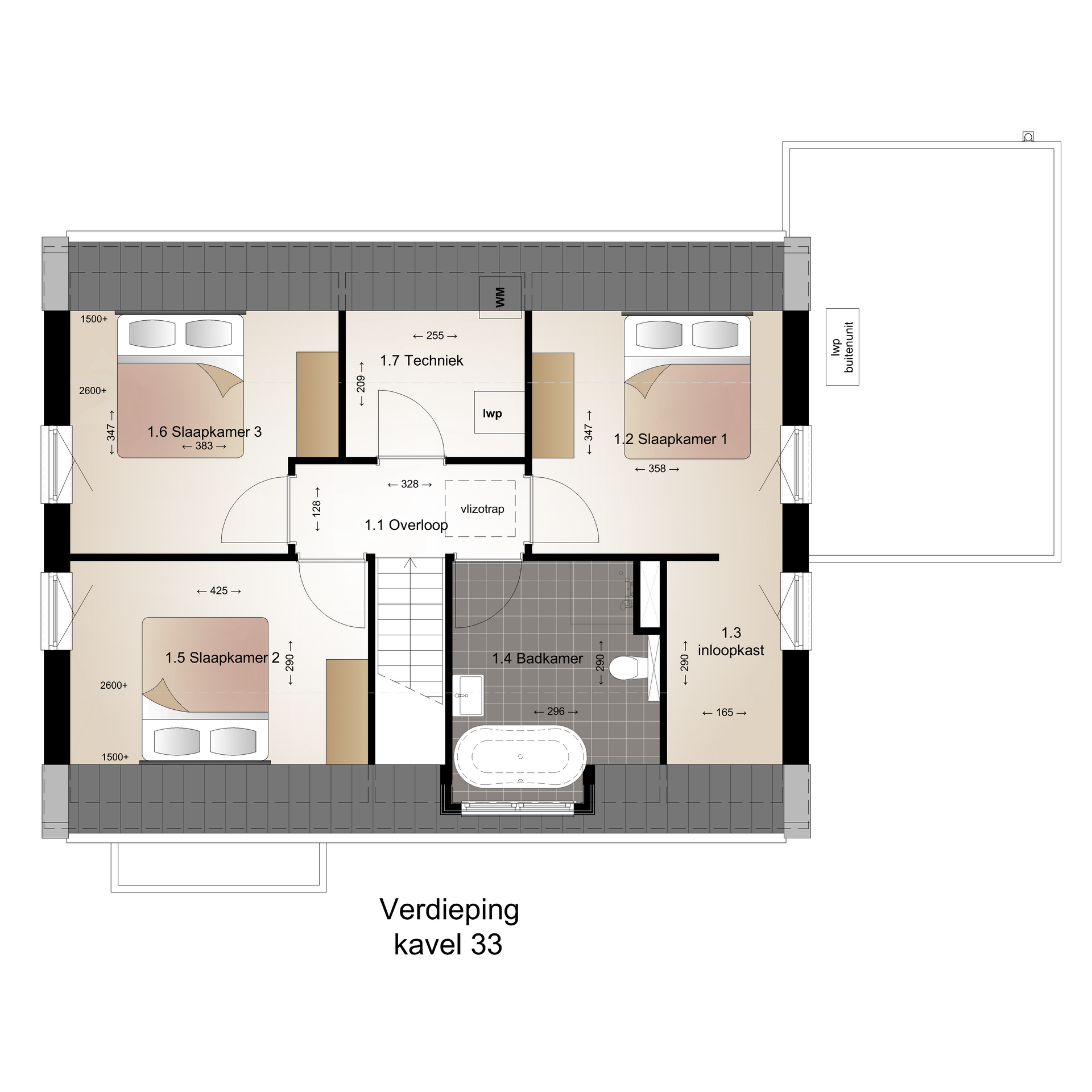 variant uitgewerkt, waarbij er een extra slaapkamer en badkamer is toegevoegd