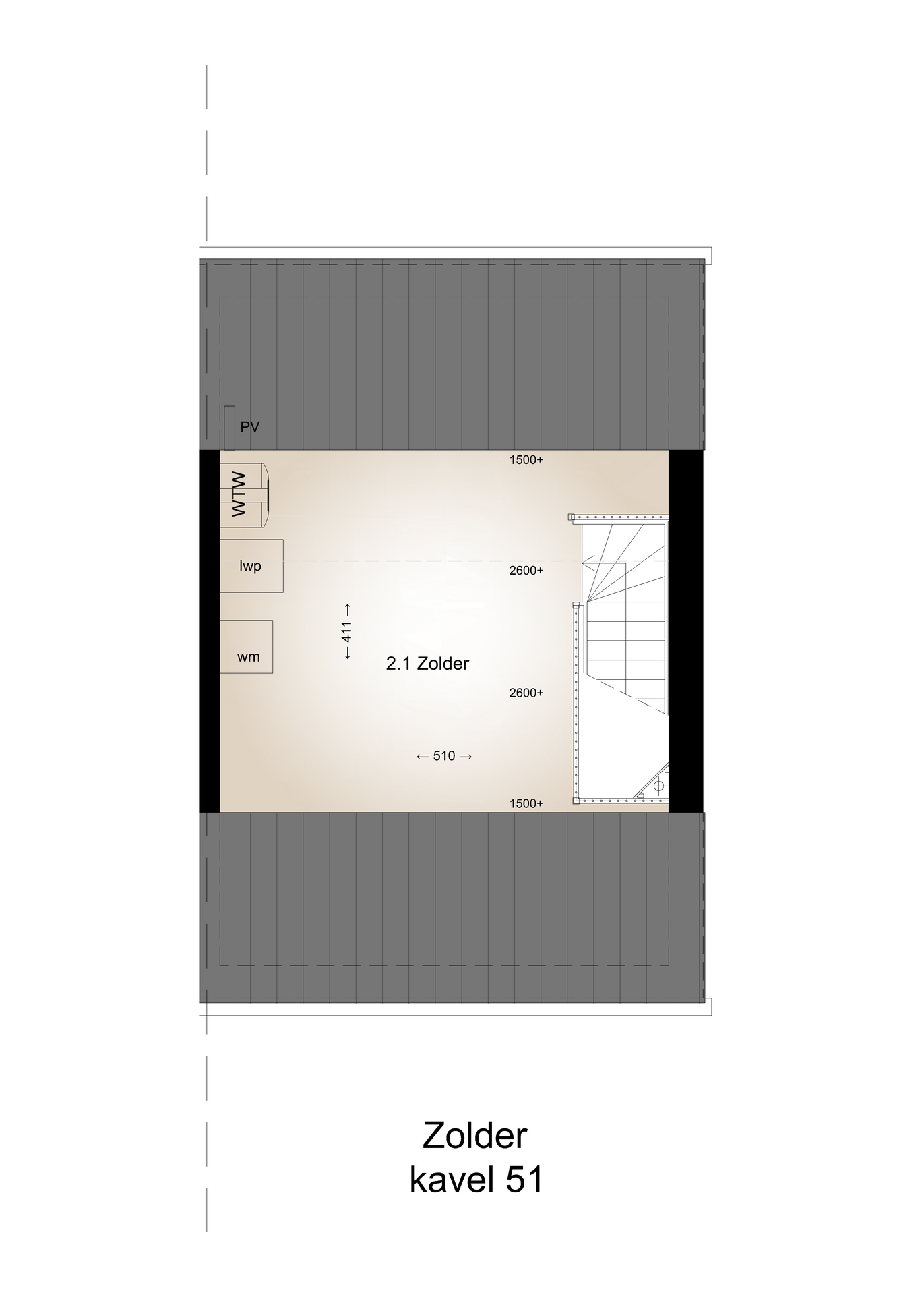 De vaste trap naar de zolder leidt naar de ruimte waar zich de installaties