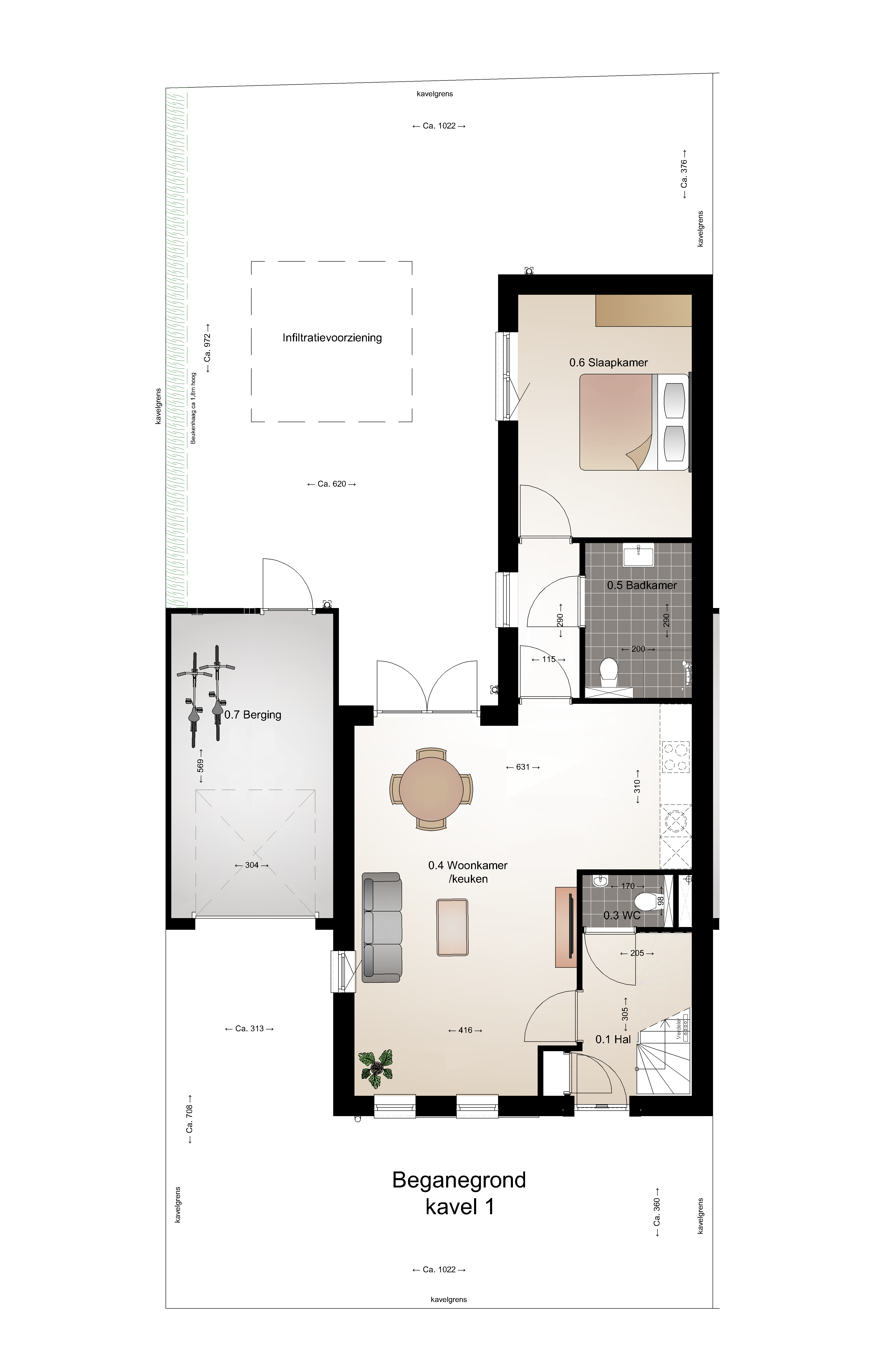 op de begane grond, zodat de woning geschikt is voor nu en later. Via de hal op