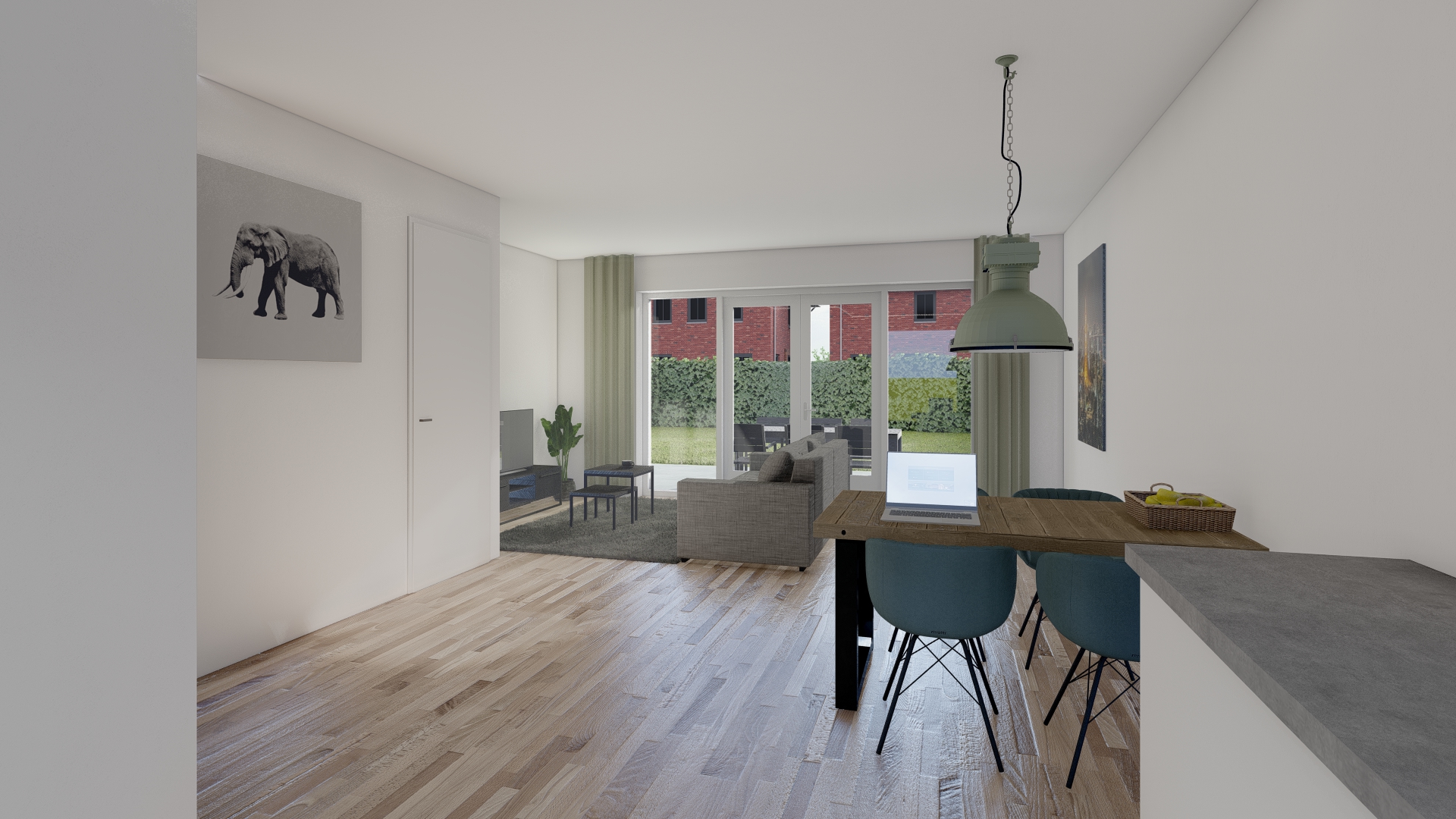 verdieping bevinden, betreedt u de woonkamer met open keuken en ruime